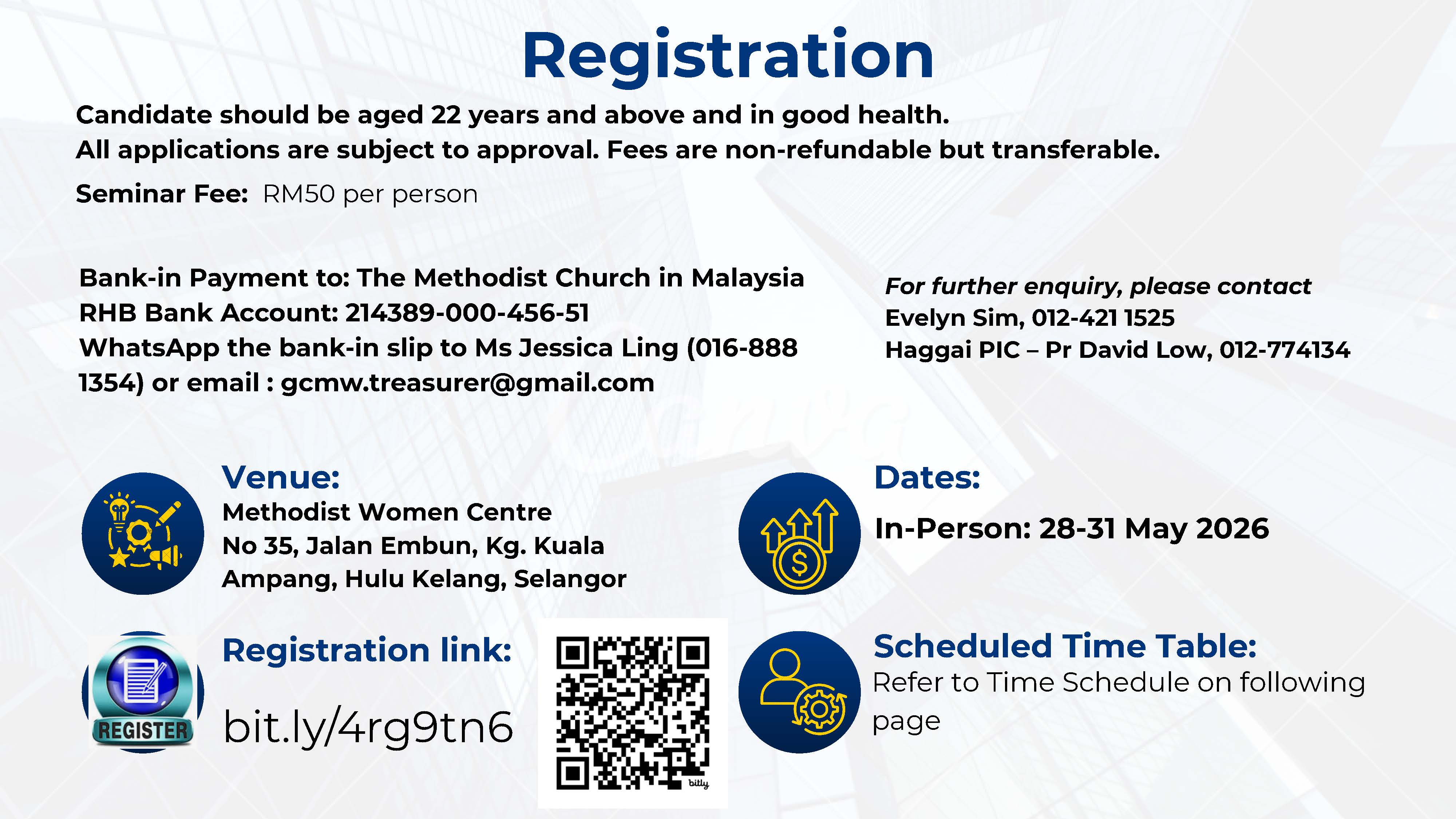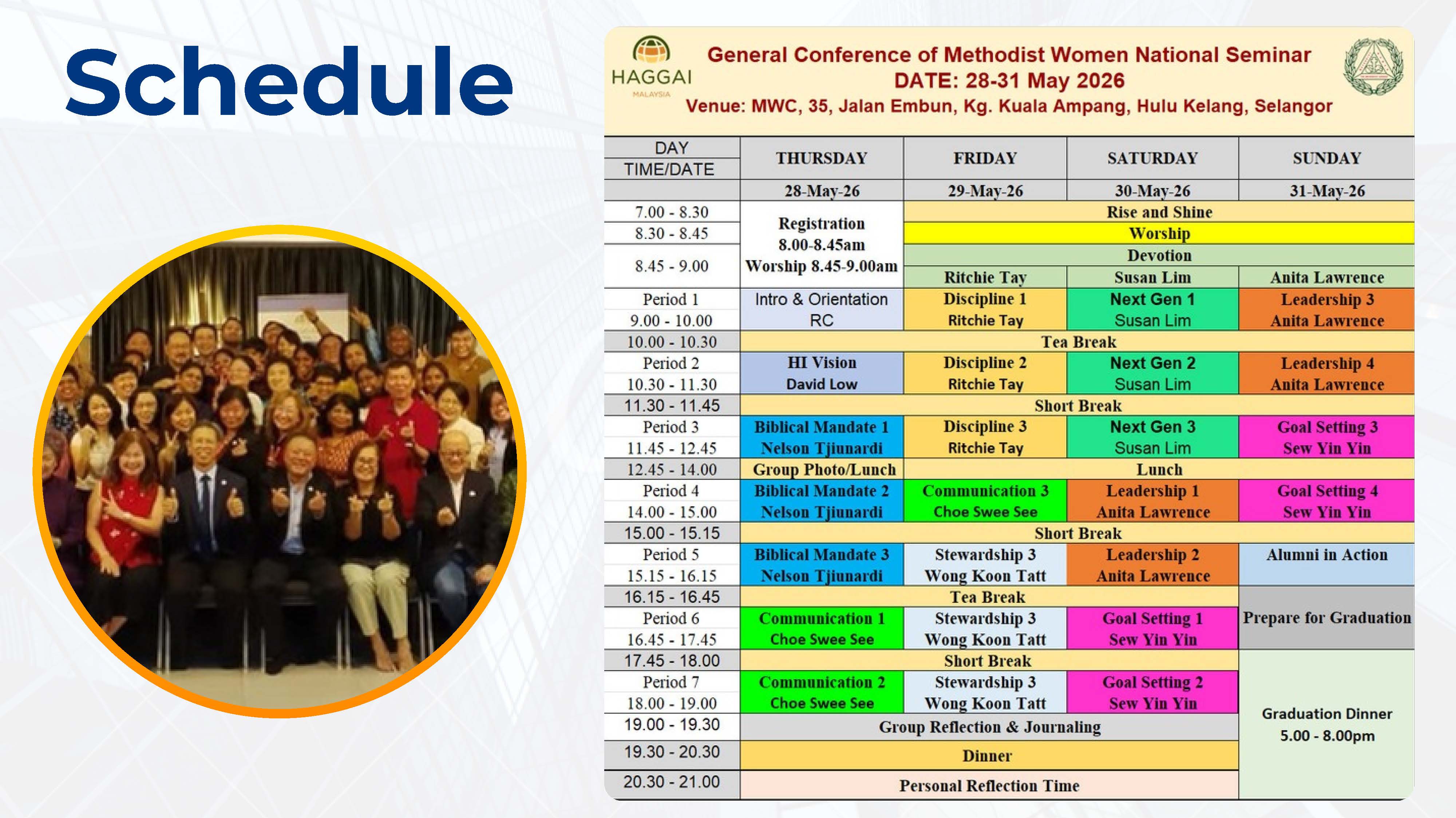 Schedule for General Conference of Methodist Women – Methodist Women Centre, Ampang, KL